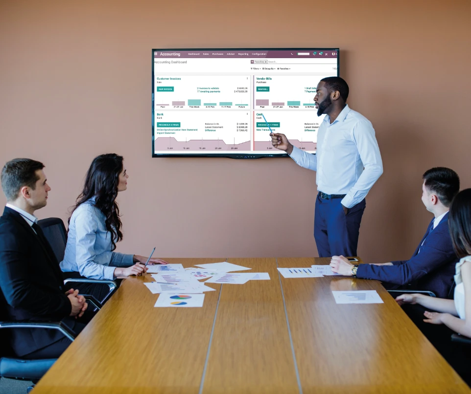 Las aplicaciones de Odoo están perfectamente integradas entre sí, lo que te permite automatizar completamente los procesos de tu negocio y aprovechar las ganancias y beneficios.