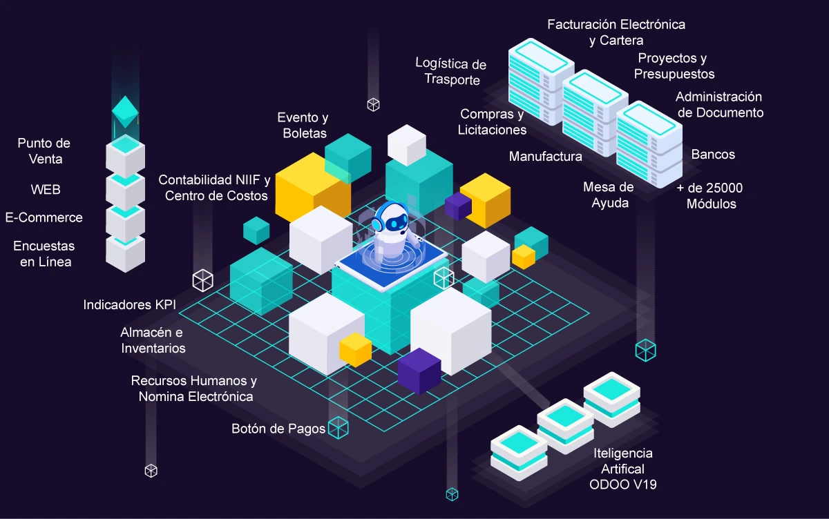 ODOO es un ERP - CRM y E-commerce integrado en un solo sistema sin riesgo de doble digitación y con una aplicación en tu celular.